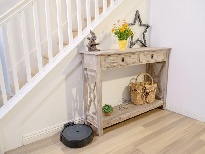 Optimal placement of the Roomba j7’s charging station is crucial for consistent operation. Position the base on a level surface with at least 3 feet of clear space on either side and 5 feet in front. Avoid placing it in direct sunlight or near heat sources.